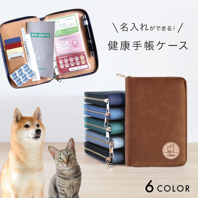 愛犬や愛猫に必要なものが収納できる、便利なマルチケース なくしやすい鑑札、狂犬病予防接種済カードをはじめ、 保険カード、診察券、ドッグラン会員証、トリミング会員証などのカード類、 お薬、レシート、処方箋など、大切なものがひとつに収納できます。 チャック付きのカバーなのでざっくり入れても落ちることがなくて安心。 中のレフィルは多めに入っているので、ご自分で調整して頂けます。 無料でお名前ラベルを付けることができますので、特別なギフトにもおすすめです。 ■サイズ(約) 幅14cm×縦21cm(A6サイズレフィル対応) ■収納: [表紙裏] ・カードポケット(ラミネートカード収納可)×4 ・大きめポケット×2 [レフィル] ・3枚入るカードポケット×3枚 ・ファスナー付きポケット(お薬やお金が入ります)×3枚 ・2分割蓋つきポケット(鑑札、狂犬病プレートなど)×3枚 ・メモ帳 20枚 ■素材:PUレザー ■お届け方法:クリックポスト [追跡番号あり・ポスト投函] 【注意事項】 ※健康手帳は付属しておりません。 *デザインの関係上、筆記体の場合は「大文字のみ」「小文字のみ」でご入力いただいた場合も、「大文字+小文字」に変更させて頂きます。「大文字のみ」「小文字のみ」をご希望の場合は、備考欄にご記入ください。 ※お使いのパソコンやスマートフォンによって、実物と色が違って見える場合もございます。ご了承ください。