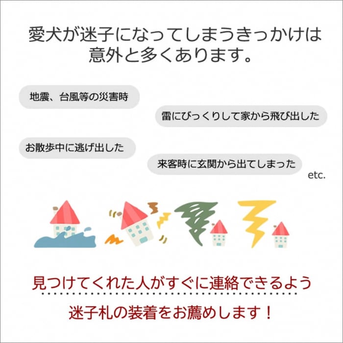マイクロチップを装着している子も、すぐに名前とお電話番号を確認できる迷子札を付けていれば更に安心!