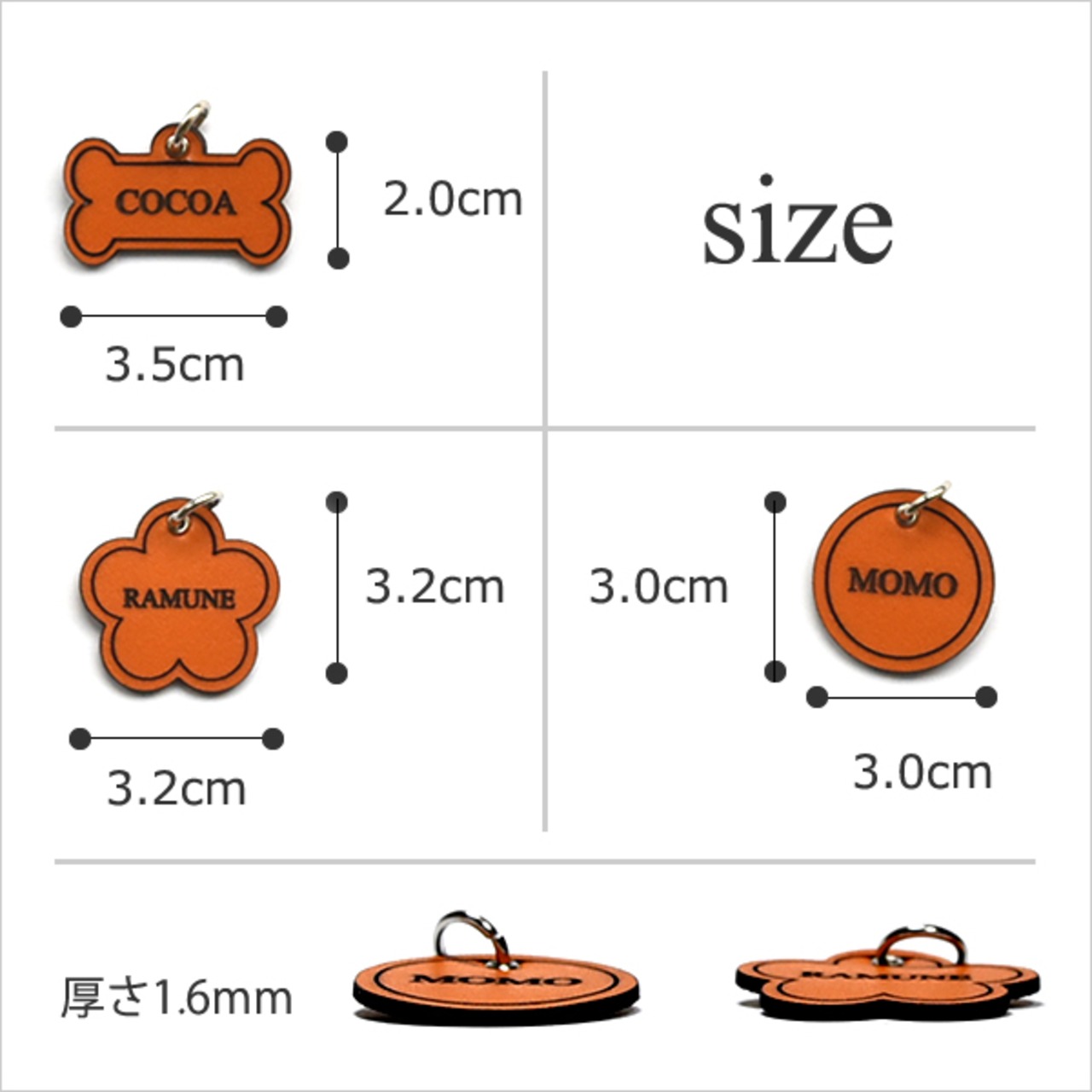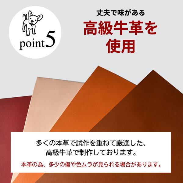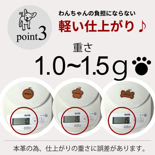 重さ1.0~1.5グラムの本革素材。柔らかくて超軽量なので、ワンちゃんの負担にはなりません。